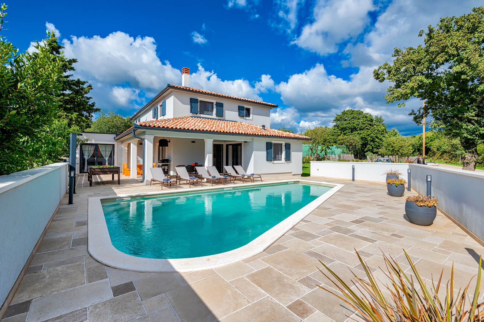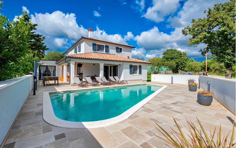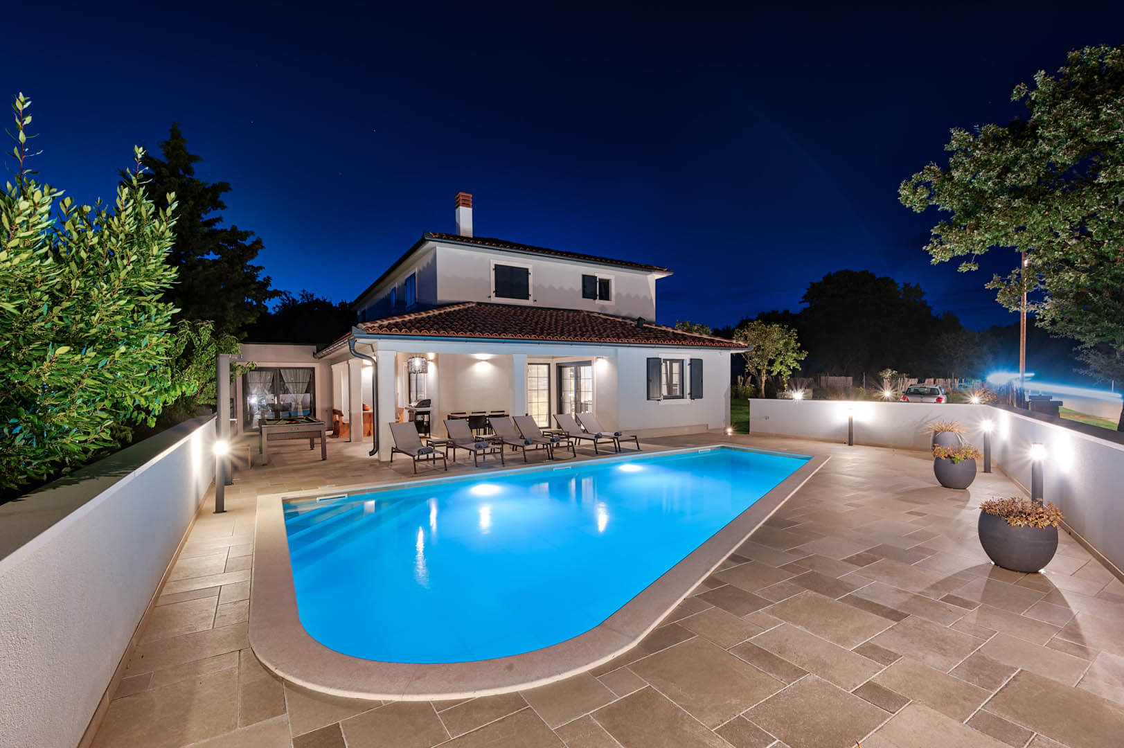Villa Paronich is located on an estate outside the village of Prodol, 20 km from Pula and about 20 km from Labin. Surrounded by forests and nearby farmland, it’s the perfect retreat for those seeking a vacation immersed in nature, greenery, and far from the city’s hustle and bustle. Ideal for relaxation and fun with family and friends, the villa offers a tranquil, safe, and peaceful environment.