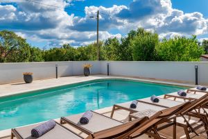 The property includes private parking for three cars and is fully fenced. A spacious 43 m² pool, which can be heated for added comfort, is at your disposal. The villa features four bedrooms, each with an en-suite bathroom. All bedrooms are equipped with air conditioning and televisions, while the bathrooms boast elegant glass-enclosed showers.